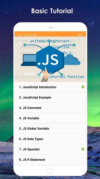 Entre sus características, se incluyen tutoriales básicos y avanzados, así como secciones específicas sobre OOP, BOM y DOM. La aplicación también cuenta con un compilador en línea que permite escribir y ejecutar código JavaScript directamente desde el dispositivo móvil. Además, se ofrecen preguntas y respuestas típicas de entrevistas relacionadas con JavaScript, lo que la convierte en una herramienta completa para quienes desean profundizar en este lenguaje de programación.